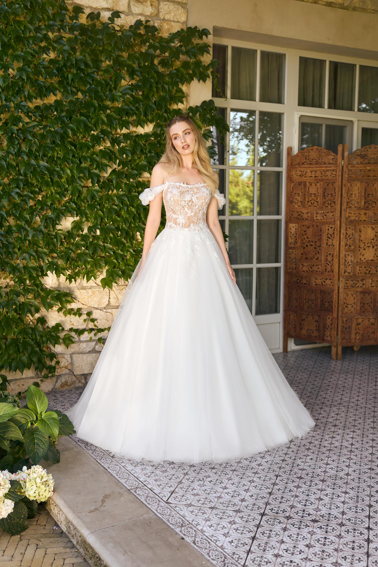 Angela Bianca 1146 trouwjurk in ivoorkleurige elegantie