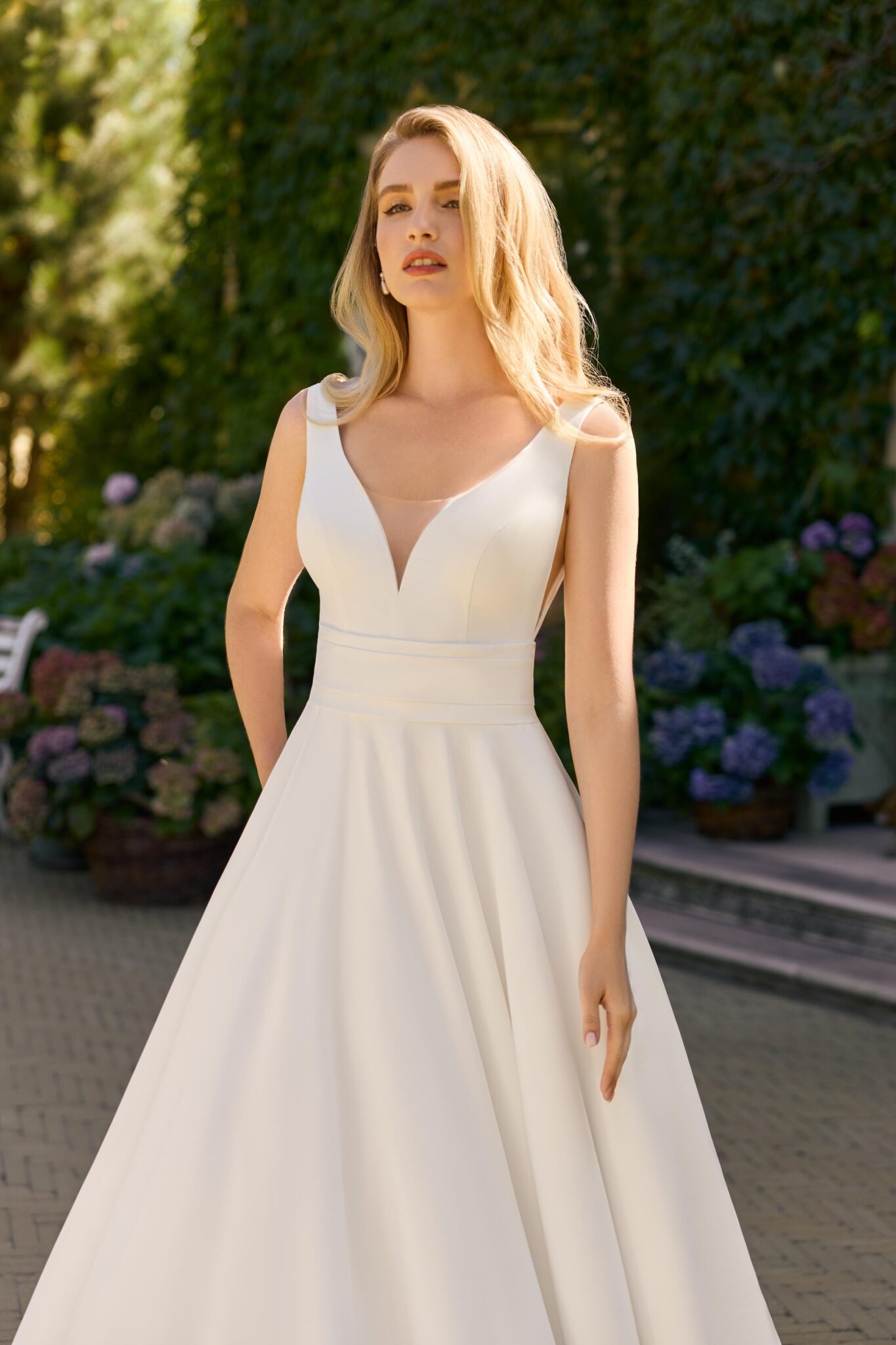 Angela Bianca 1151 is gemaakt voor bruiden die houden van een halslijn die het figuur verlengt en het gezicht met moeiteloze verfijning omlijst. De V-hals silhouet zorgt voor een evenwichtige, gracieuze uitstraling die prachtig samenwerkt met fijne sieraden, een sluier of opvallende oorbellen. Het is een ideale keuze als je een halslijn wilt die romantisch, modern en universeel flatterend aanvoelt voor bruidsportretten en echte bewegingen gedurende de dag.