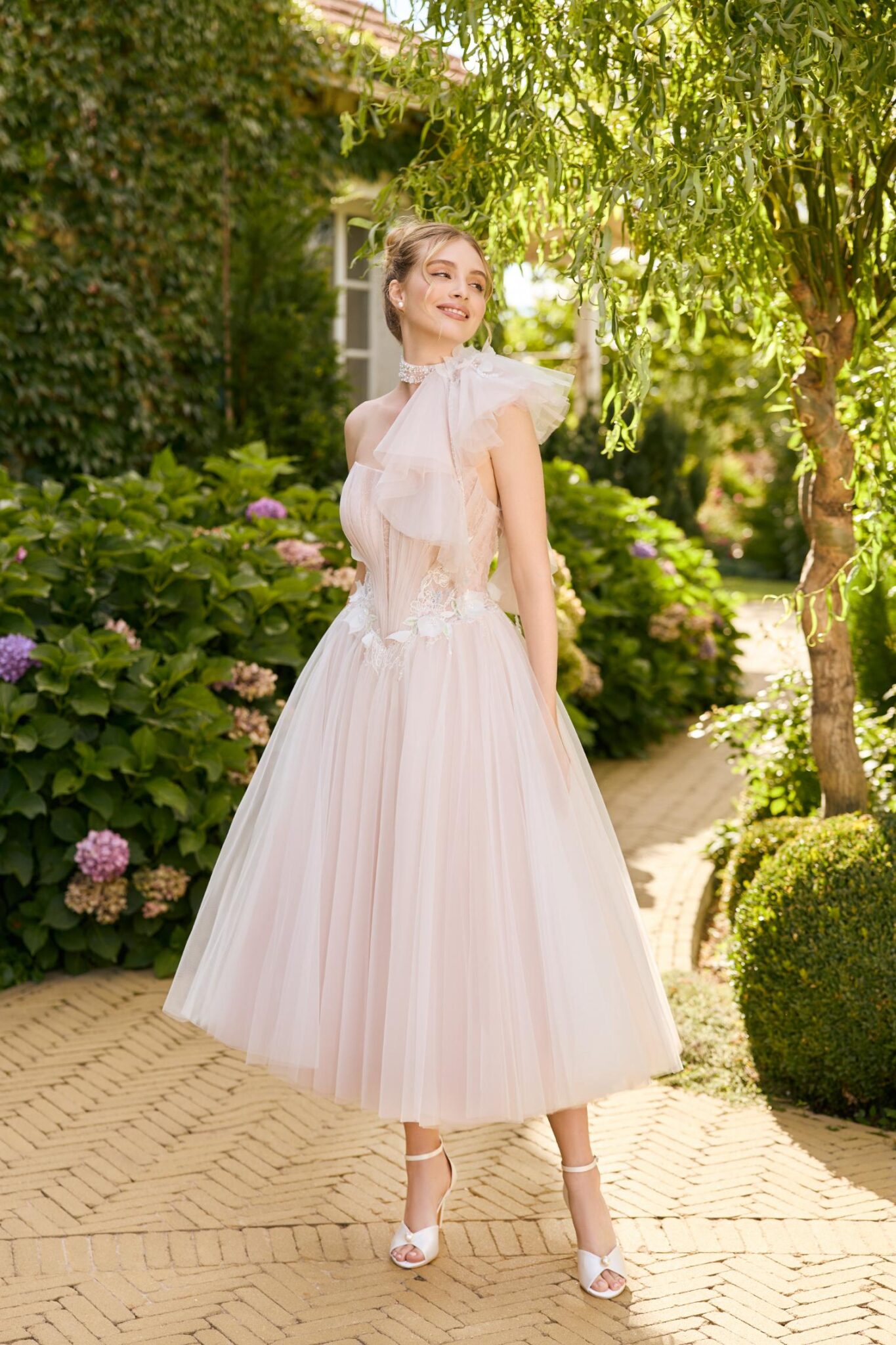 Met zijn korte silhouet is deze jurk een ideale optie voor bruiden die op zoek zijn naar comfort, beweging en een frisse benadering van bruidsmode. Een kortere zoom is perfect voor stadsbruiloften, bestemmingsceremonies, zomervieringen, bruiloften op het registratiekantoor, repetitiediners, second looks en levendige recepties waarbij dansen prioriteit heeft. Het stelt je in staat je schoenen te laten zien, vrij te bewegen en gemakkelijk van je dag te genieten, zonder die onmiskenbare bruidsuitstraling op te offeren. Het resultaat is een chique, modebewuste jurk die toch authentiek klaar aanvoelt voor de bruiloft.