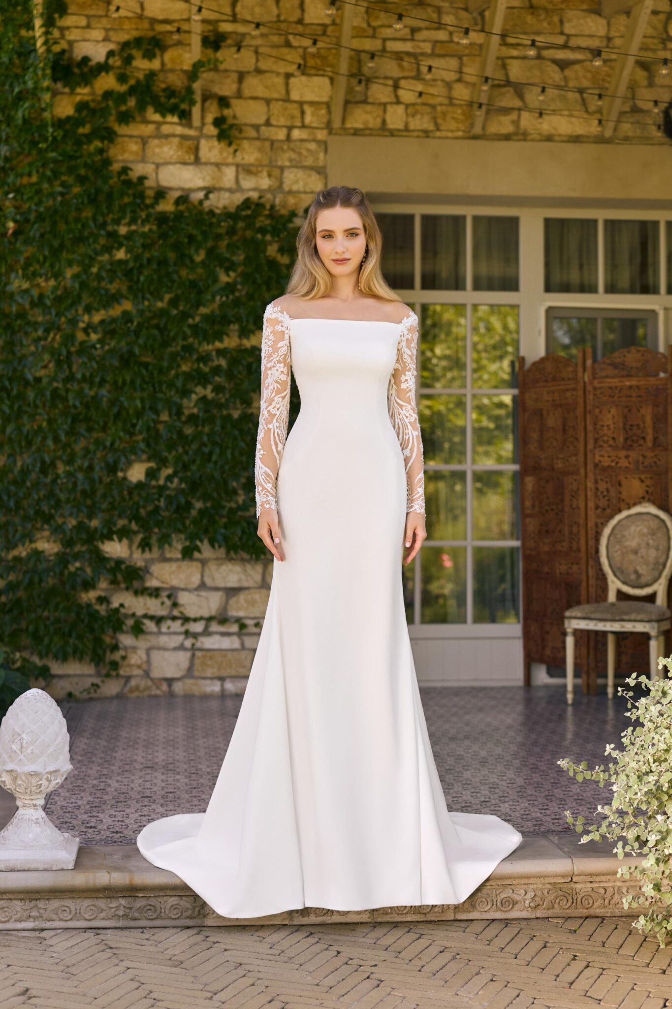 Een van de meest gewilde kenmerken van Angela Bianca 1157 zijn de sleeves, ontworpen om romantiek en zelfvertrouwen te combineren. Mouwen kunnen een jurk een gevoel van artistiek gevoel geven en tegelijkertijd comfortabele dekking bieden, waardoor ze een populaire optie zijn voor bruiden die op zoek zijn naar een tijdloze look die prachtig overgaat tussen ceremonie en receptie. De mouwen complementeren ook de boothalslijn en creëren een harmonieuze, langgerekte lijn door het bovenlichaam.