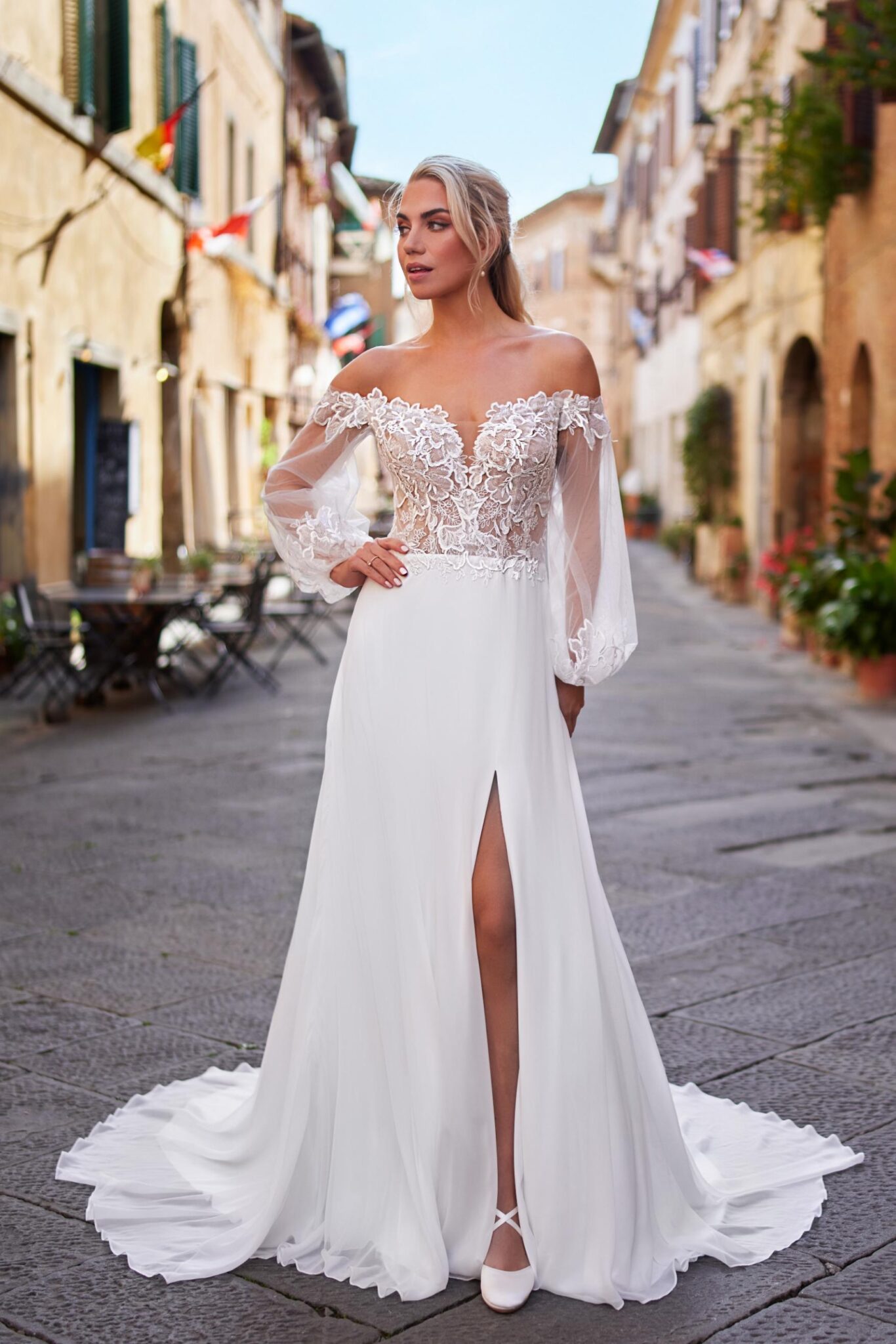 Brinkman 25117 is meer dan alleen een trouwjurk; Het is een compleet bruidsmodemoment dat speciaal en onvergetelijk aanvoelt. De Ivory tint biedt een zachte, stralende bruidslook die prachtig past bij zowel warme als koele trouwkleurenpaletten. De off-shoulder halslijn, kant, mouwen en open rug vormen samen een samenhangend ontwerp dat romantisch, zelfverzekerd en verheven aanvoelt.