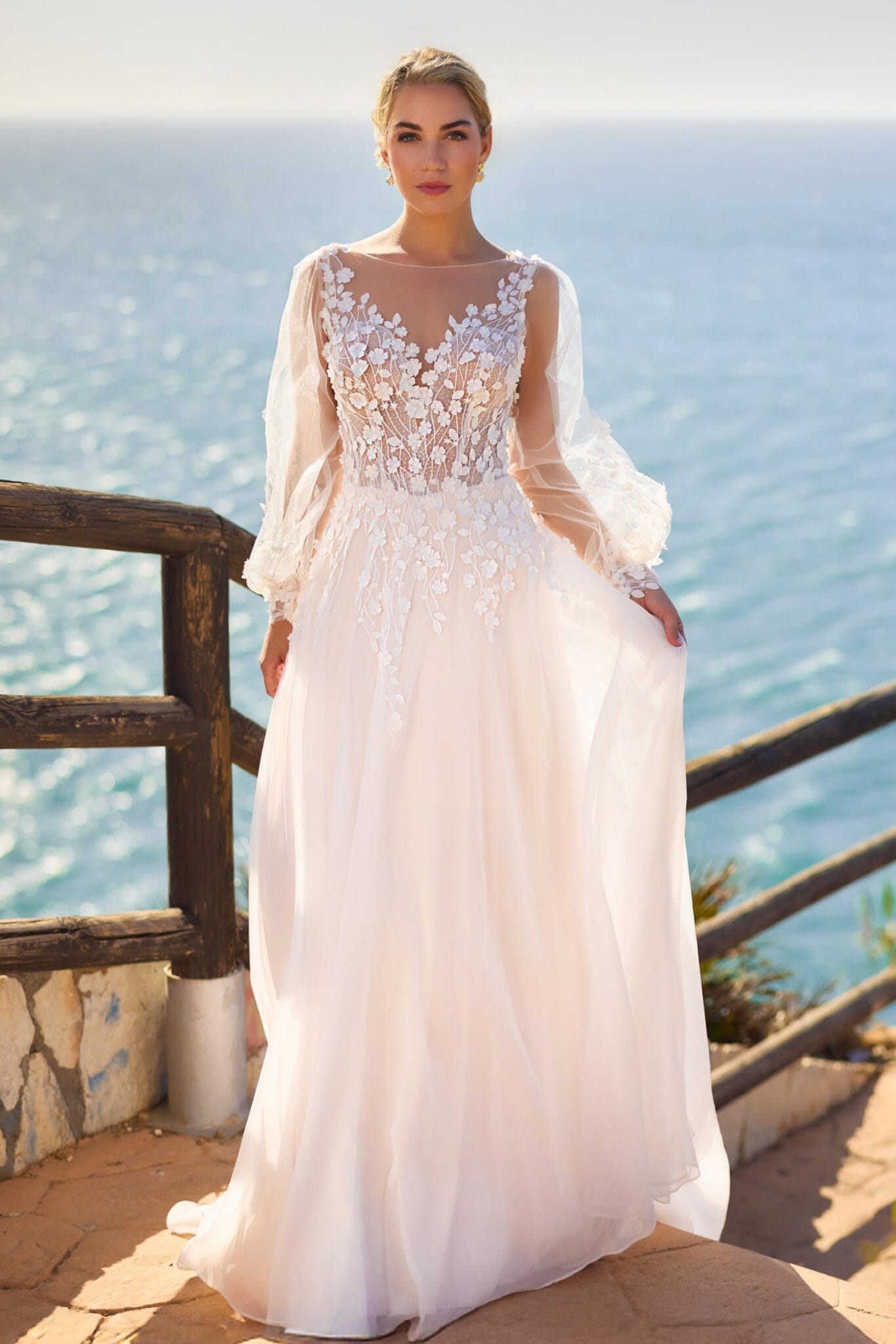 De toevoeging van Sleeves zorgt voor balans en veelzijdigheid. Mouwen kunnen het comfort vergroten, een gepolijste lijn door de armen geven en de kanten elementen op een samenhangende en bewuste manier omlijsten. Ze zijn perfect voor bruiden die een gracieuze, beheerste uitstraling willen die toch romantisch en licht aanvoelt.