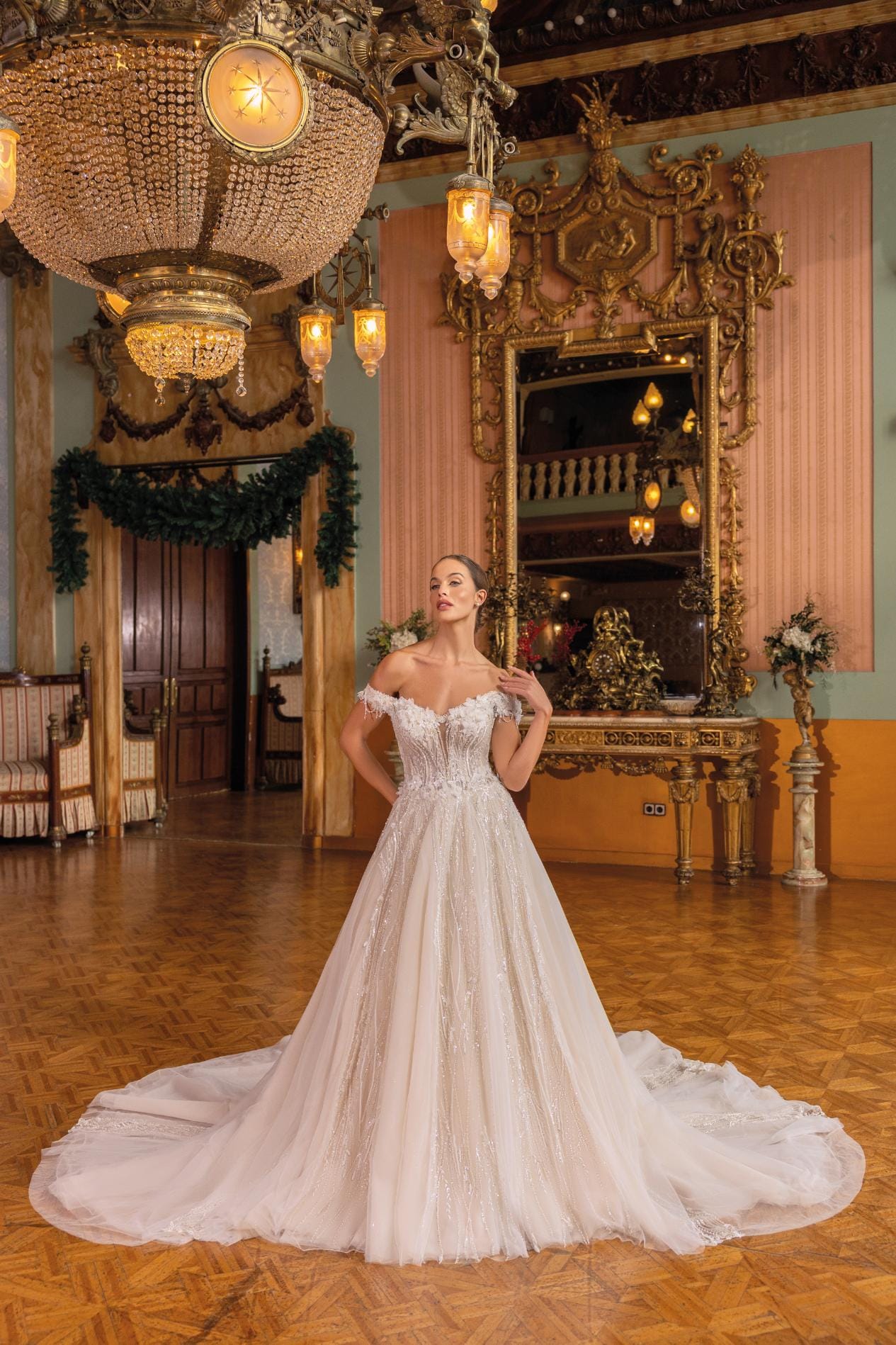 De Monica Loretti 3535 is gemaakt voor bruiden die houden van de verfijnde romantiek van een off-shoulder look. De halslijn omlijst de sleutelbeenderen prachtig en creëert een flatterende, bruidsachtige silhouet die prachtig werkt voor klassieke portretten, gangpadmomenten en avondverlichting tijdens de receptie. Het off-shoulder ontwerp biedt ook die felbegeerde mix van zachtheid en zelfvertrouwen, waarbij de schouders worden benadrukt en een gepolijste, verheven afwerking behouden blijft.