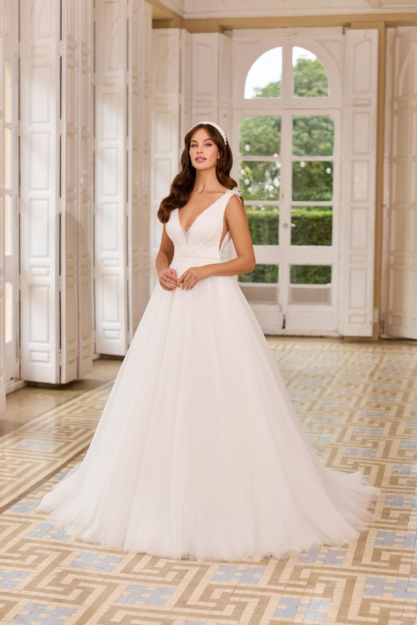Kiezen voor Monica Loretti 8352 betekent een jurk kiezen die doordacht ontworpen aanvoelt voor een bruid die elegantie met een memorabele randje wil. De combinatie van V-halsstijl, een door prinsessen geïnspireerde silhouet en een betoverende open achterkant zorgt voor een complete bruidsuiting die er zowel in het echt als op foto’s prachtig uitziet. Als onderdeel van de categorieën Monica Loretti en Monica Loretti Liora weerspiegelt deze jurk een kenmerkende mix van romantisch ontwerp en hedendaagse verfijning.