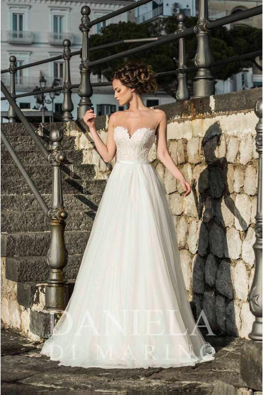 De halslijn van de Daniela di Marino S4186 is ontworpen om het bovenlichaam met verfijnde romantiek te accentueren. De strapless Sweetheart vorm omlijst de schouders en het sleutelbeen en biedt een vrouwelijke contour die past bij een breed scala aan bruidsstijlen, van minimalistisch chic tot glamoureuze romantiek. Deze halslijn is vooral geliefd bij bruiden die een elegante, open look willen die prachtig combineert met opvallende oorbellen, een dramatische sluier of een delicate ketting.
