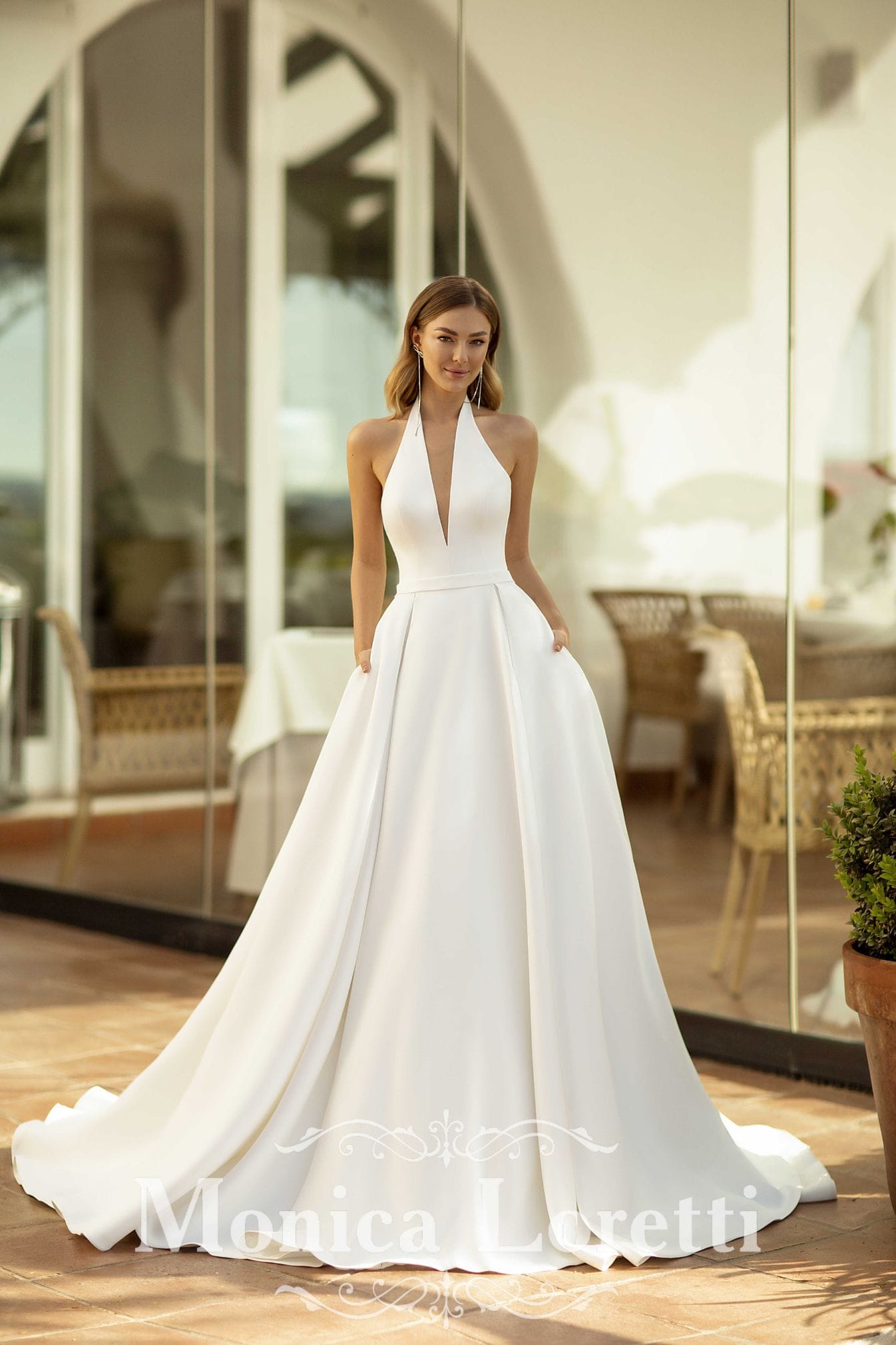 De Monica Loretti 8237 Sale valt op door een strakke, zelfverzekerde vorm die je schouders benadrukt en je bovenlichaam prachtig accentueert. De halterstyling zorgt voor een chique, langgerekte uitstraling, perfect voor bruiden die houden van een eigentijdse uitstraling en toch een klassieke aanwezigheid op de trouwdag willen. Of je nu een stadsfeest, een stijlvolle bruiloft op locatie of een intieme ceremonie plant, deze jurk is gemaakt om prachtig te fotograferen vanuit elke hoek en om speciaal te voelen vanaf het moment dat je erin stapt.