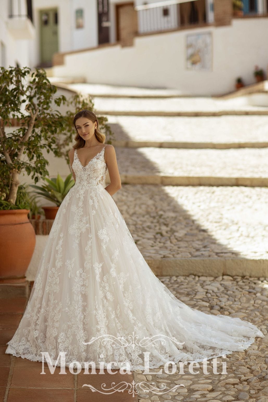 Een van de meest fascinerende elementen van de Monica Loretti 8250 Sale is de manier waarop hij kant gebruikt om diepte, romantiek en een luxe afwerking te creëren. Kant blijft een topkeuze in trouwjurken omdat het traditie overbrengt en tegelijkertijd oneindige creativiteit mogelijk maakt in patroon, plaatsing en textuur. In deze jurk voegt kant een verfijnde zachtheid toe, waardoor de bruidssfeer wordt versterkt zonder de algehele silhouet te overheersen. Het resultaat is een look die gedetailleerd en verfijnd aanvoelt, ideaal voor bruiden die van vakmanschap houden en die je van dichtbij kunt zien en de hele dag door kunt waarderen.